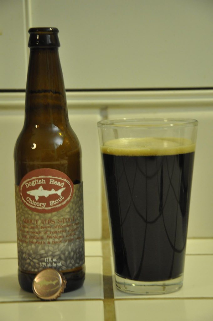 Dogfish Head Chicory Stout 5.2% Pours a dark black with a creamy, thick head. smells of dark roast malts and coffee with a hint of chocolate. Tastes like a nice dark ale with some smooth coffee bittering